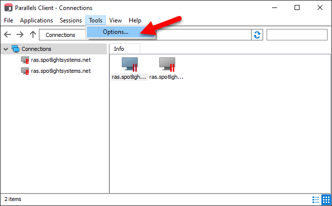 If you do not have the application on the machine where you use RAS then please send an email to support@spotlightsystems.com and ask for instructions on how to install the Parallels Client on to your machine. You may also request assistance and a support agent will be more than happy to assist you.